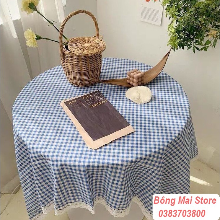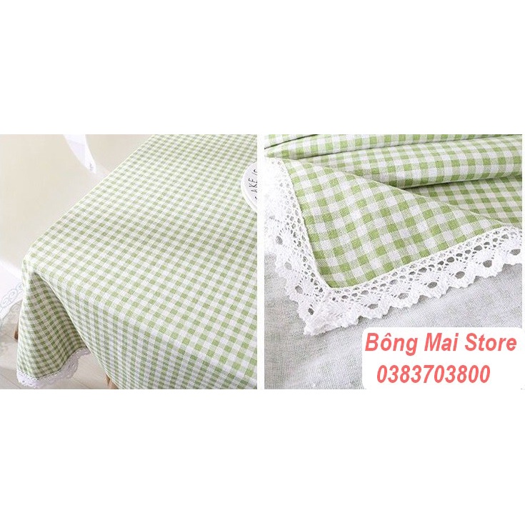 [110*160cm] Khăn trải bàn vải canvas họa tiết kẻ nhí VIỀN REN phong cách Nhật Bản nhẹ nhàng vintage