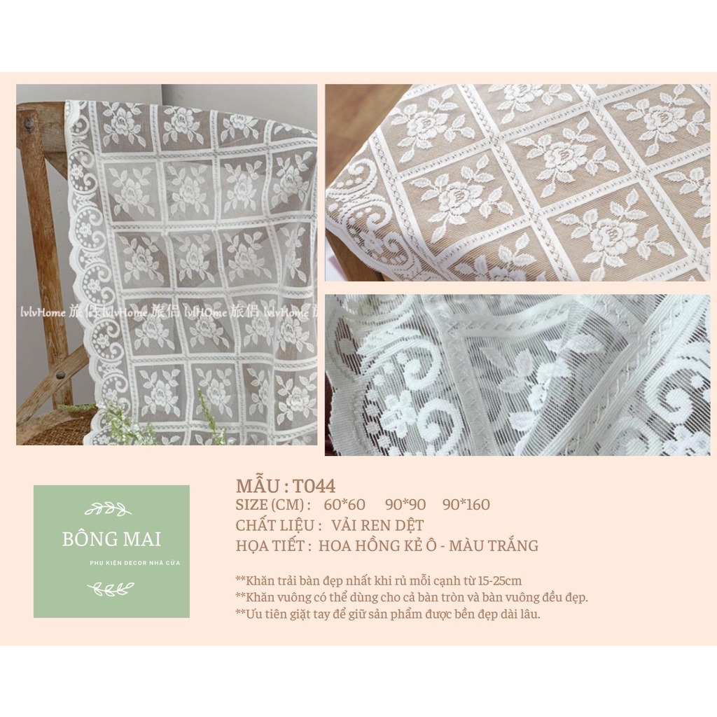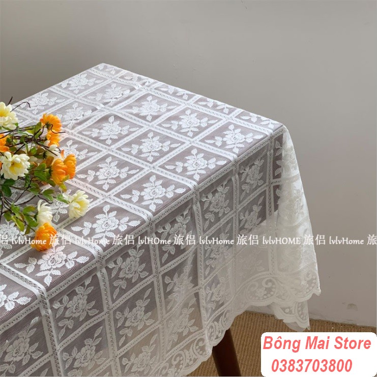 Khăn trải bàn ren họa tiết phong cách vintage [T044]Khăn được sử dụng với nhiều công dụng : khăn trải bàn trà, trải bàn làm việc, trải sofa decor phòng, thảm picnic, phụ kiện chụp ảnh.