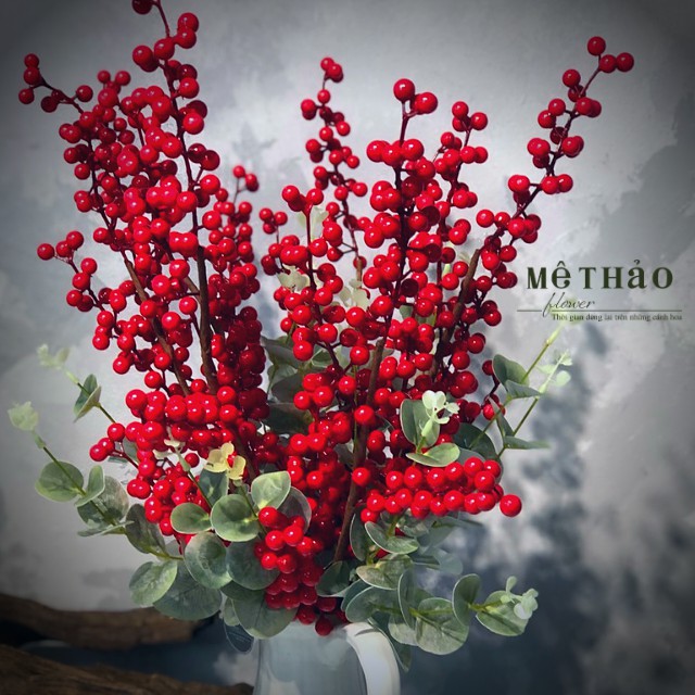 - Chất liệu: quả làm từ nhựa dẻo. Cành hoa làm từ lõi thép bọc nhực đúc pvc bền bỉ, dễ uốn nắn