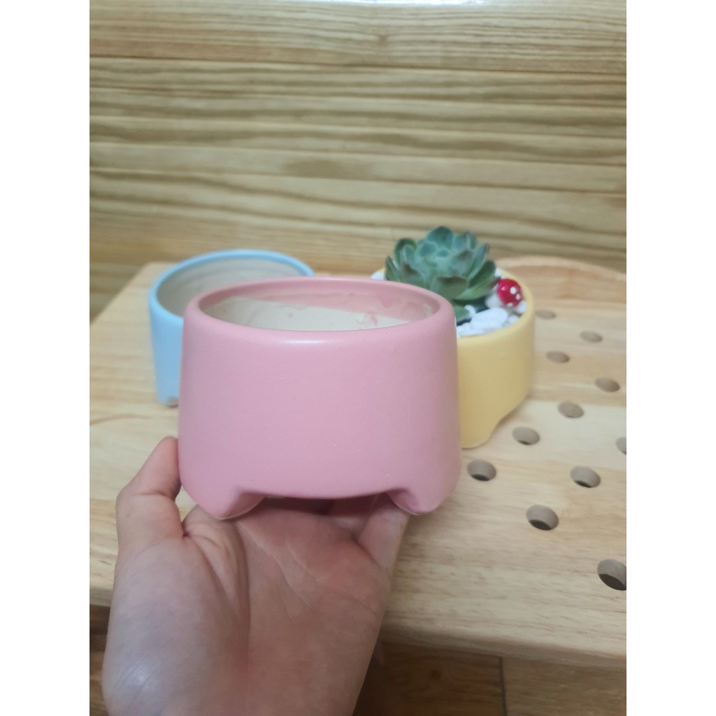 [9cm*6cm] Chậu trồng cây cảnh - Sen Đá - Xương Rồng - Hoa nhỏ - Kiểu vành TRÒN 3 CHÂN - MS100, gốm Sứ Bát Tràng.