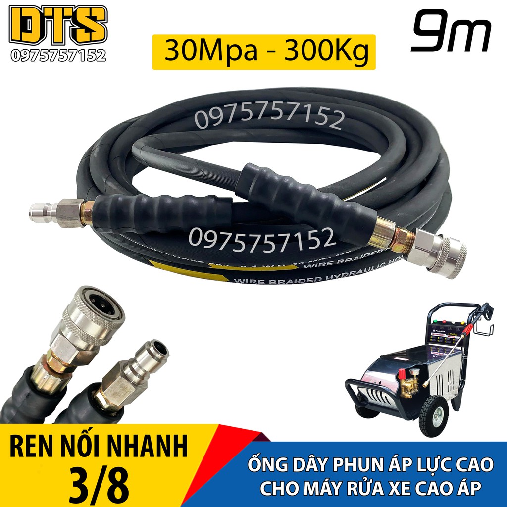 Giới thiệu 9m Dây phun cao áp lõi thép cho máy xịt rửa áp lực cao Lutian, V-Jet, Panda, Jetta, Palada, Projet (Ren nối nhanh 3/8)