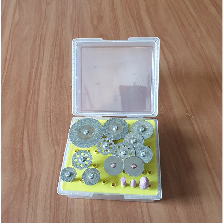 Bộ đĩa 10 cắt kim cương cương 2 đĩa cắt răng gỗ và 3 đá mài - hộp dụng cụ cắt mài 16 chi tiết dùng cho m