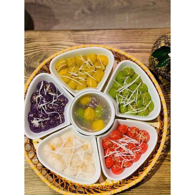 Nhà cửa & Đời sống > Bộ đồ bàn ăn > Dĩa || Bộ đĩa 5 cánh hoa đào sứ bát tràng kèm khay mâyCòn hàng