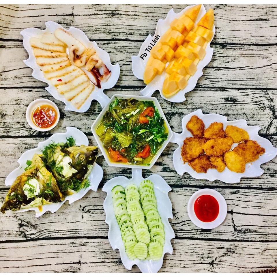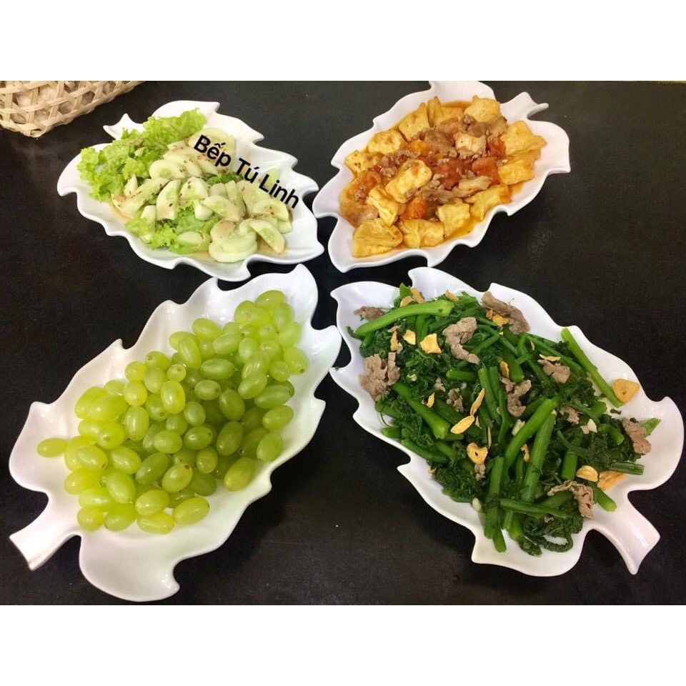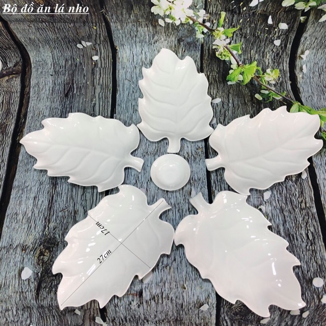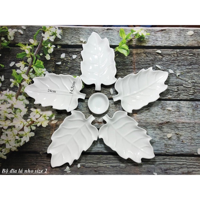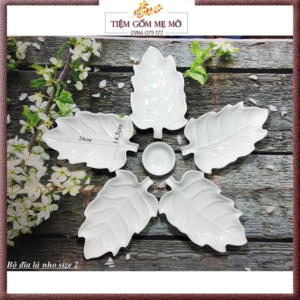 Nhà cửa & Đời sống > Bộ đồ bàn ăn > Dĩa || Bộ đĩa bày trang trí thức ăn hình lá nho gốm sứ Bát Tràng men trắngCòn hàng