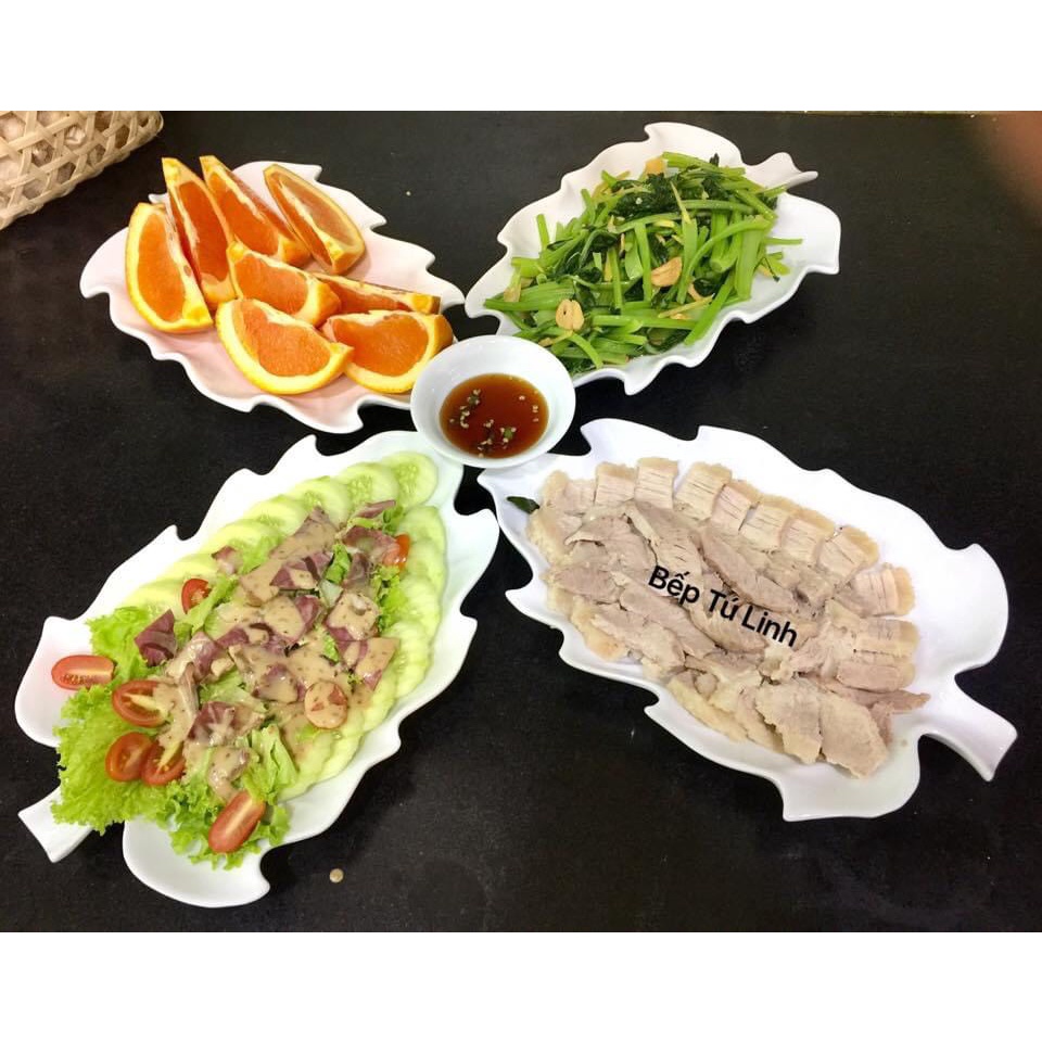 Giới thiệu Bộ đĩa bày trang trí thức ăn hình lá nho gốm sứ Bát Tràng men trắng