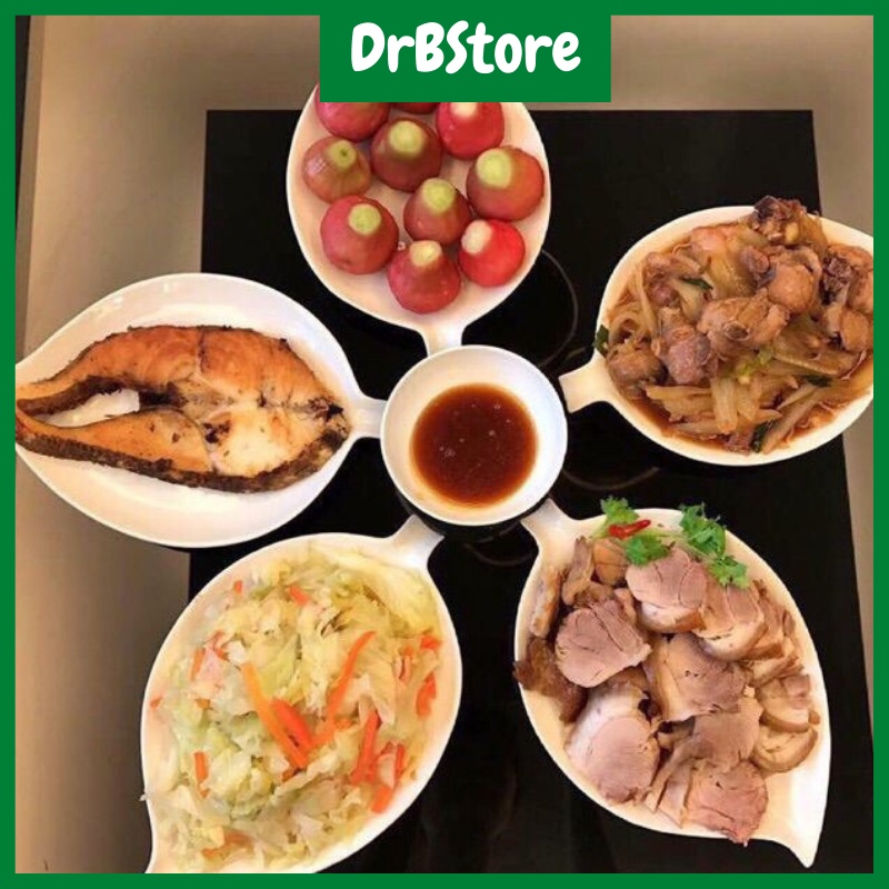 Bộ Đĩa Gốm Sứ Bát Tràng Hình Lá Trầu Men Trắng Tinh Dày Dặn - Đẹp