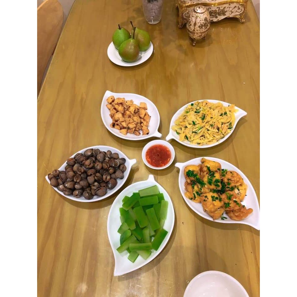 Nhà cửa & Đời sống > Bộ đồ bàn ăn > Dĩa || Bộ Đĩa Gốm Sứ Bát Tràng Hình Lá Trầu Men Trắng Tinh Dày Dặn - ĐẹpCòn hàng