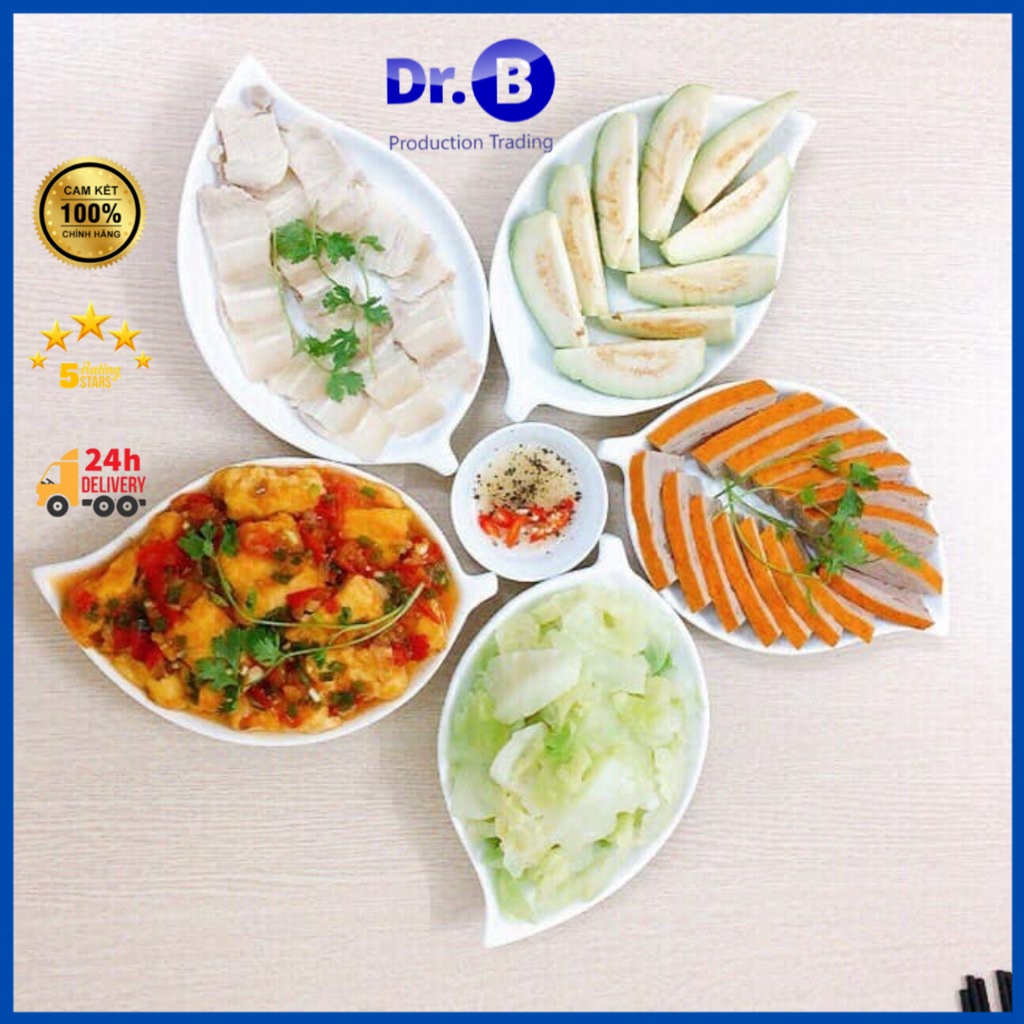 Bộ đĩa gốm sứ nghệ thuật Bát Tràng hình lá trầu men trắng tinh, dày dặn và rất đẹpCÔNG TY GIA DỤNG DRB CAM KẾT: