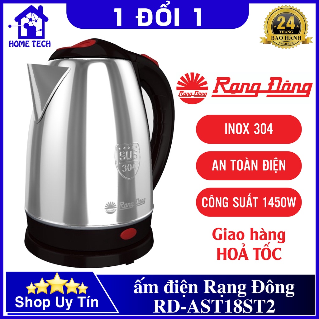 Ấm đun nước siêu tốc Rạng Đông RD-AST18ST1 Chính hãng, ấm pha trà, đun nước pha sữa