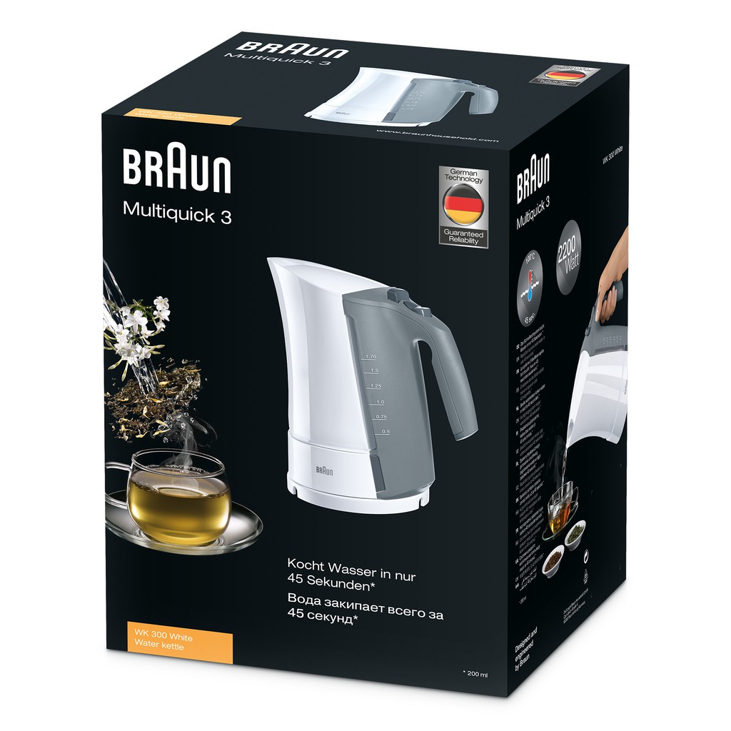 Braun là thương hiệu Đức hàng đầu thế giới với lịch sử hơn 90 năm phát triển. Ấm đun siêu tốc Braun được sản xuất dựa trên những tiêu chuẩn chất lượng cao cấp nhất của Đức và châu Âu. Với phương châm “Thiết kế tạo nên sự khác biệt”, Braun đã cho ra đời những dòng sản phẩm cao cấp với thiết kế đơn giản, hài hòa, sang trọng nhưng vẫn đảm bảo tính năng ưu việt. Các thiết kế của Braun được khẳng định với hơn 100 giải thưởng quốc tế danh giá
