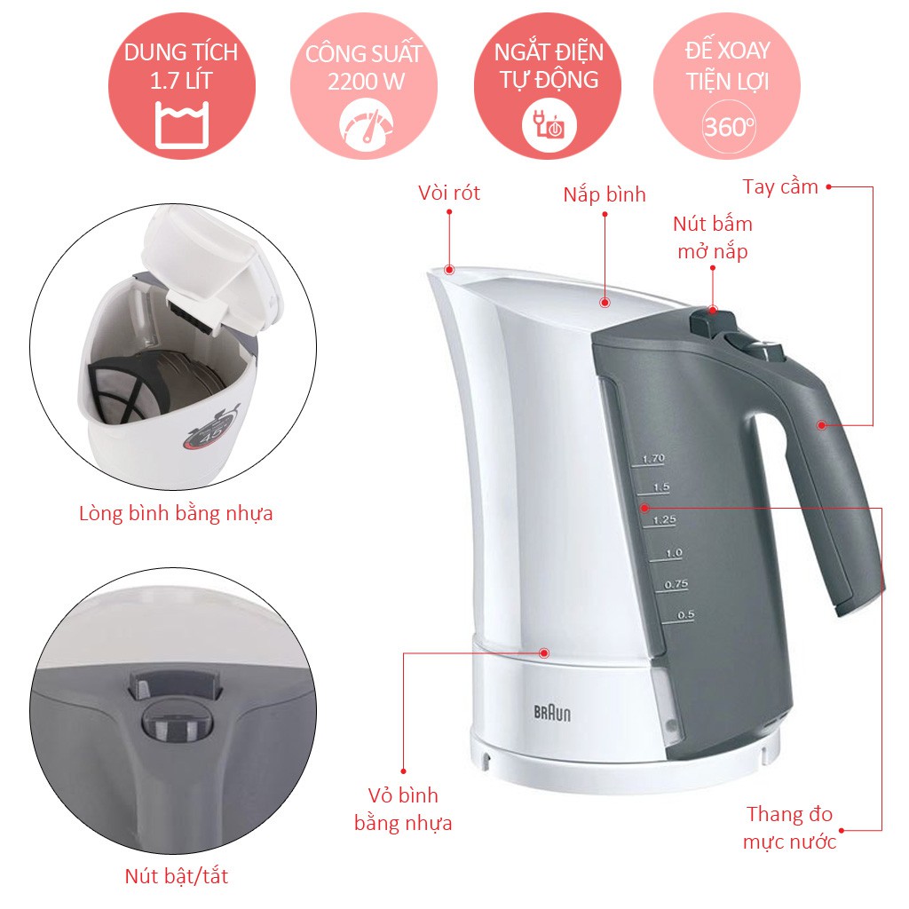 Thương hiệu: Braun | Xem thêm các sản phẩm Bình đun siêu tốc của BraunMô tả ngắn