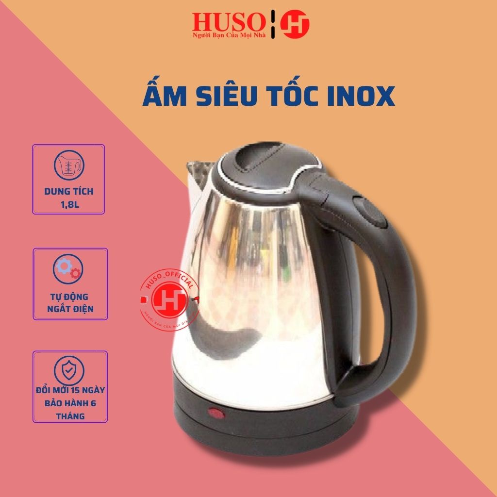 Ấm siêu tốc đun nước INOX 1.8L, ấm đun nước tự ngắt an toàn tiện lợi