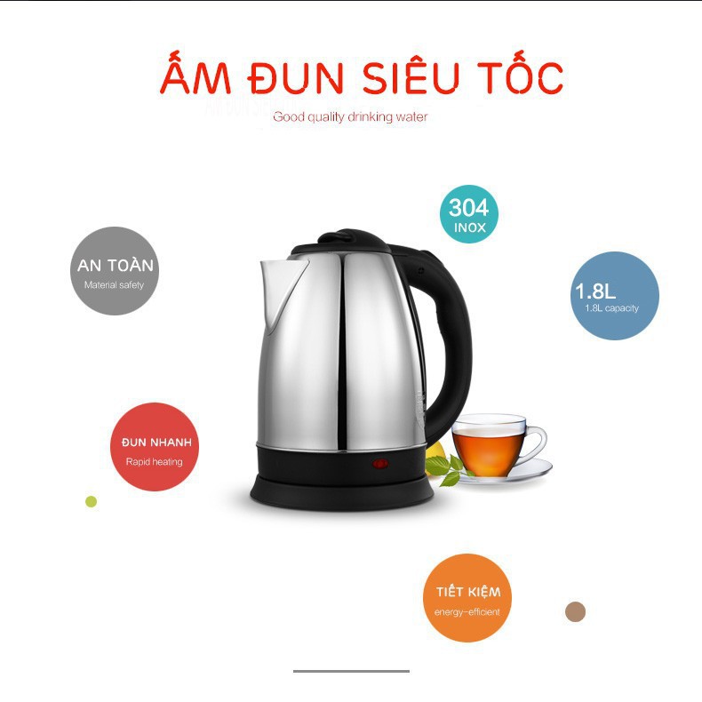 Ấm Siêu Tốc INOX Cao Cấp 1,8L An Toàn Chống Giật
