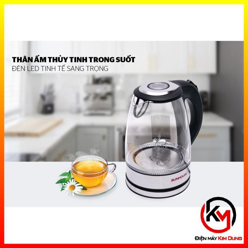 Ấm Siêu Tốc Thủy Tinh, Bình Đun Siêu Tốc Sunhouse SHD1217 Cao Cấp Dung Tích Lớn Giúp Pha Trà, Pha Cà Phê, Nấu Mì