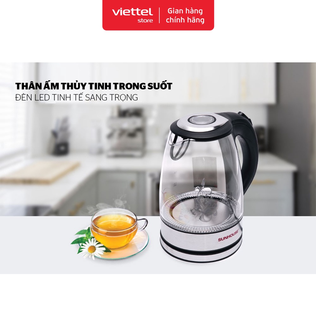 Ấm siêu tốc thủy tinh Sunhouse SHD1217 đen Chính hãng