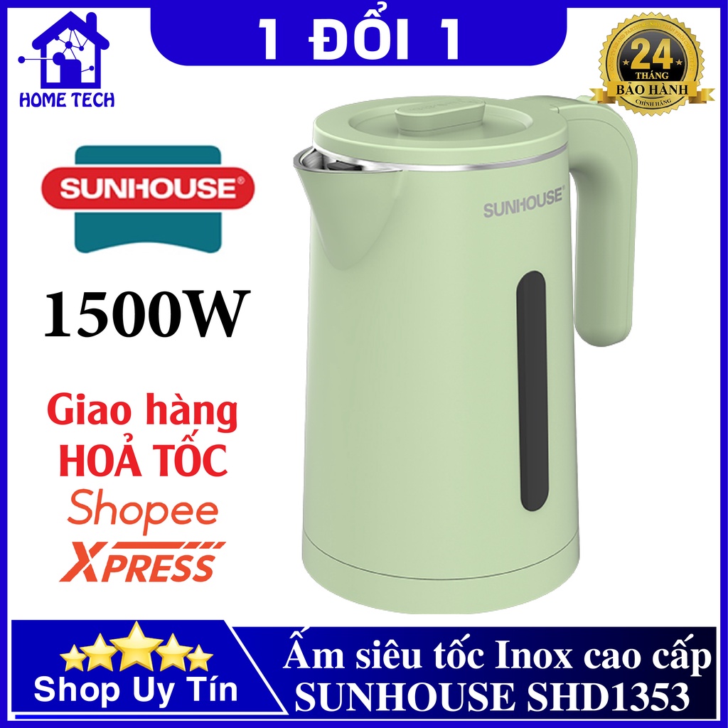 Ấm Siêu Tốc Sunhouse SHD1353 Đế Đúc 1.8l 1500w Chính Hãng, Bình Siêu Tốc Inox 2 Lớp Cao Cấp Chống Bỏng