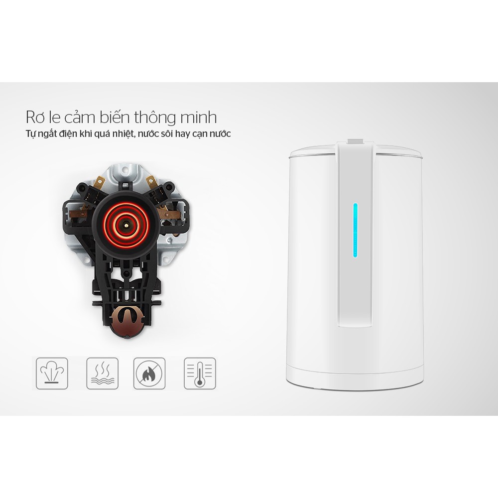 Rơ-le: Đáy liền dập sâu -Tự động ngắt khi nước sôi, cạn nước hoặc ấm quá nóng