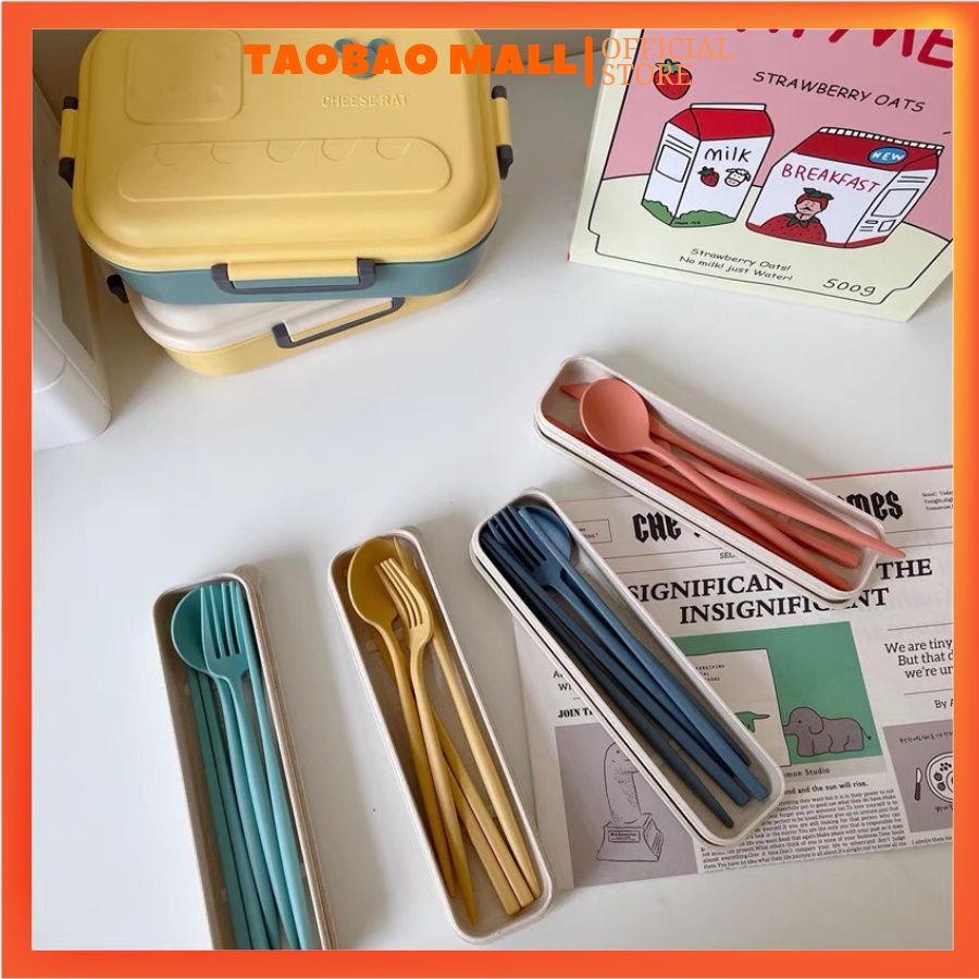🍴 Bộ đũa muỗng nĩa cá nhân văn phòng bằng lúa mạch tặng kèm hộp đựng dễ thương tiện lợi- Bộ Muỗng Đũa Nĩa Lúa Mạch chất liệu từ bột lúa mạch, bên shop mong muốn gửi đến bạn một sản phẩm an toàn cho sức khỏe của bạn và thân thiện với môi trường.