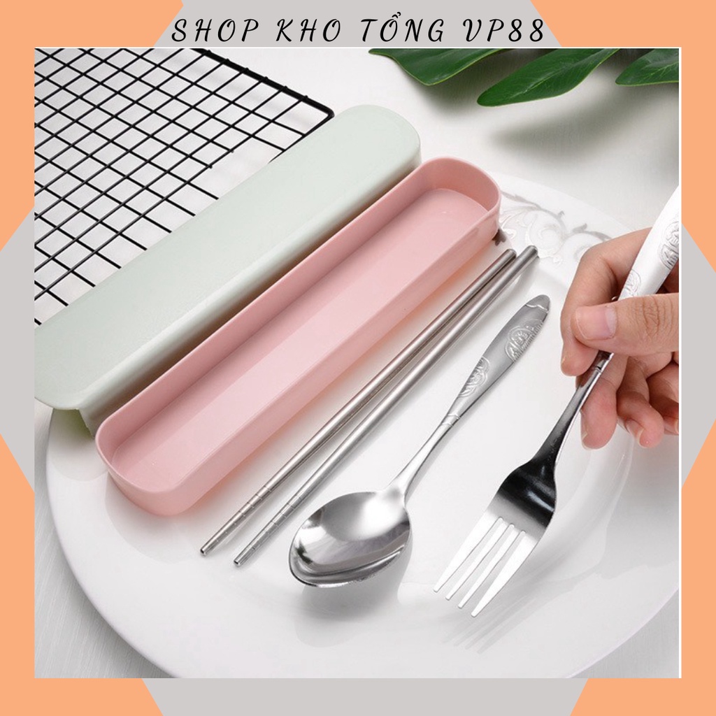 Bộ Đũa Muỗng Nĩa Inox có hộp tiện lợi du lịch / văn phòng 88085 KHO TỔNG