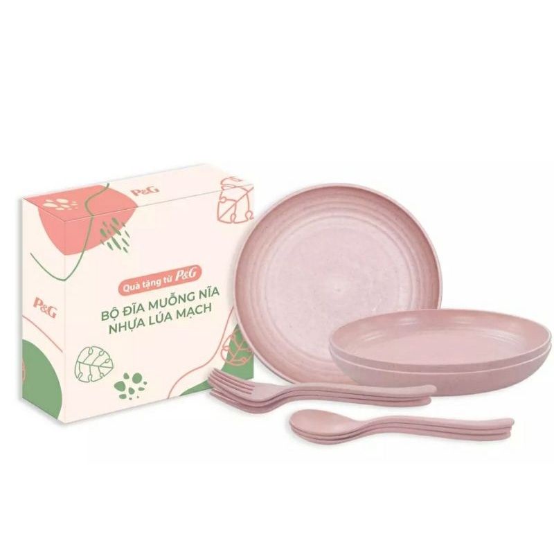 Bộ đĩa muỗng nĩa nhựa lúa mạch (quà tặng P&G)