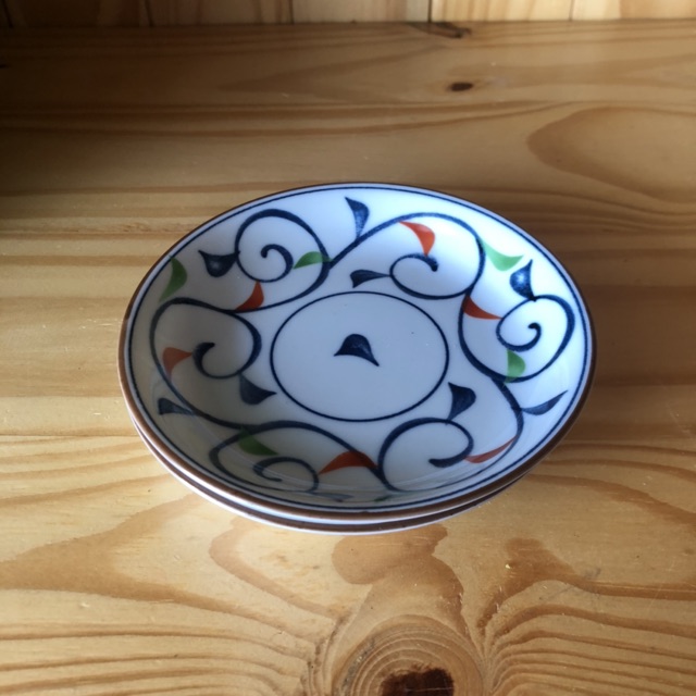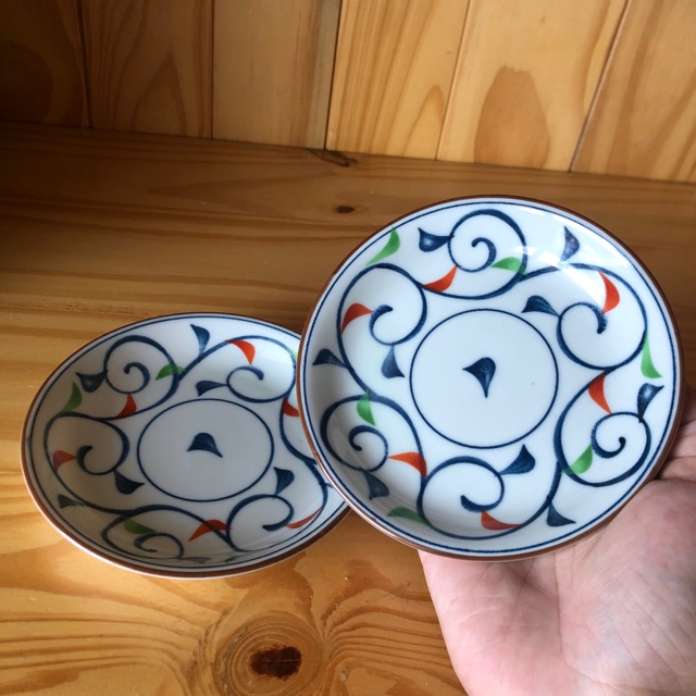 Nhà cửa & Đời sống > Bộ đồ bàn ăn > Dĩa || Bộ đĩa nhỏ gốm sứ Nhật gồm 2 cái hoa văn ngũ sắcCòn hàng