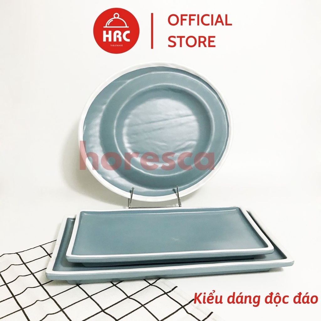 Bộ Đĩa Nhựa Phíp Melamine Giả Gốm Sứ Màu Xanh Dương [SANG TRỌNG] Bộ Kiểu Dáng Độc Đáo Phong Cách Châu Âu