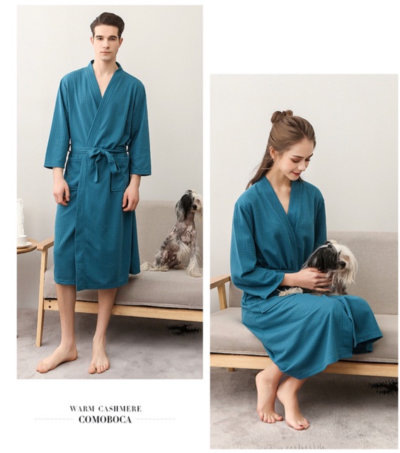 Áo Choàng Tắm Tổ Ong Nam Nữ Vải Mỏng- Áo choàng chất liệu cotton thun ( poly ), theo cách dệt tổ ong hiện đại, tạo sự thông thoáng khi mặc