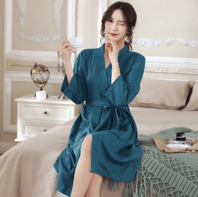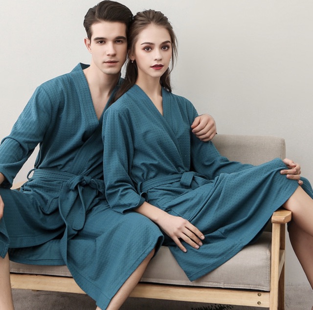 Áo Choàng Tắm Nam Nữ Tổ Ong Vải Mỏng- Áo choàng chất liệu cotton thun, theo cách dệt tổ ong hiện đại, tạo sự thông thoáng khi mặc