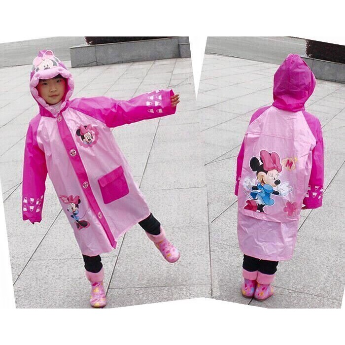 Với các nhân vật hoạt hình đáng yêu va thân quenÁo mưa có túi treo cặp sách sau lưng