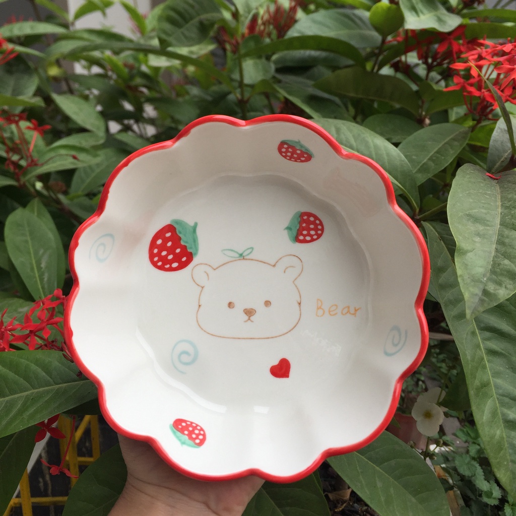 Nhà cửa & Đời sống > Bộ đồ bàn ăn > Dĩa || Bộ Đĩa Sứ Decor Gấu Dâu Tây Chén Dĩa Dễ Thương Cute Cao Cấp S140Còn hàng