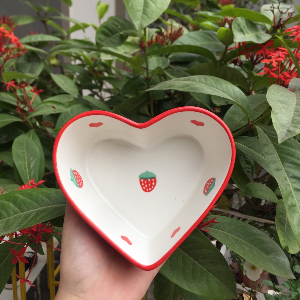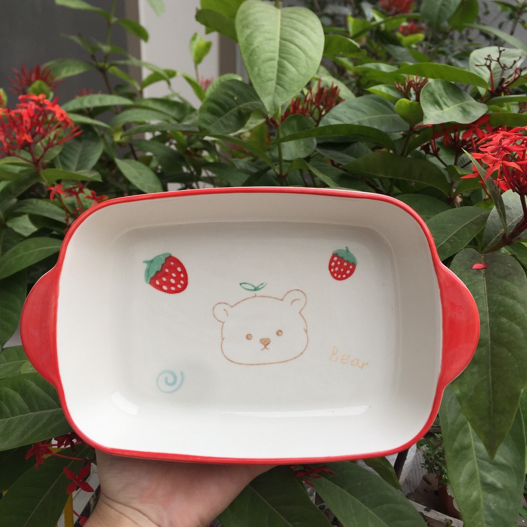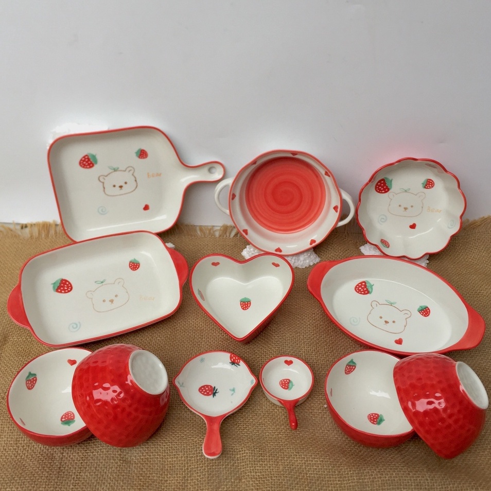 Bộ Đĩa Sứ Decor Gấu Dâu Tây Chén Dĩa Dễ Thương Cute Cao Cấp S140