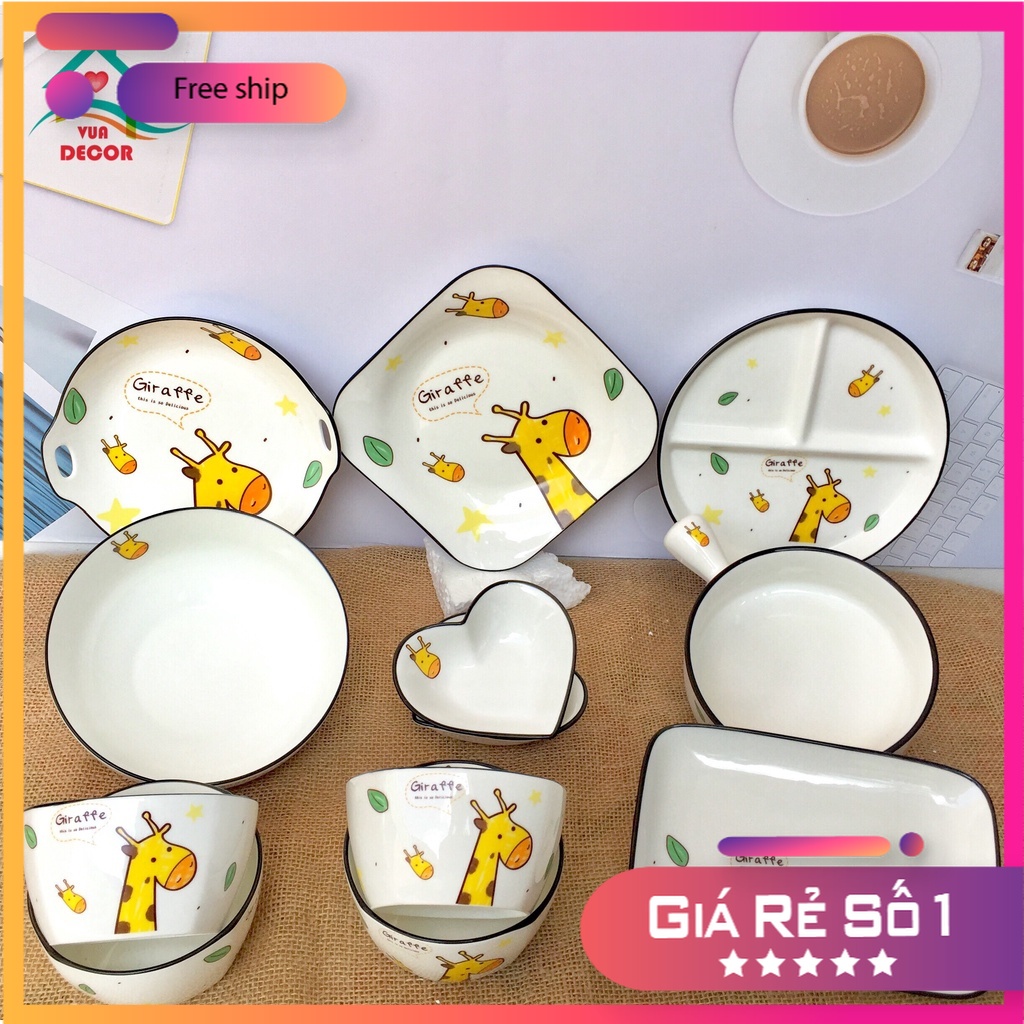 Nhà cửa & Đời sống > Bộ đồ bàn ăn > Dĩa || Bộ Đĩa Sứ Decor Hươu Vàng Chén Dĩa Dễ Thương Cute Cao Cấp S112Còn hàng
