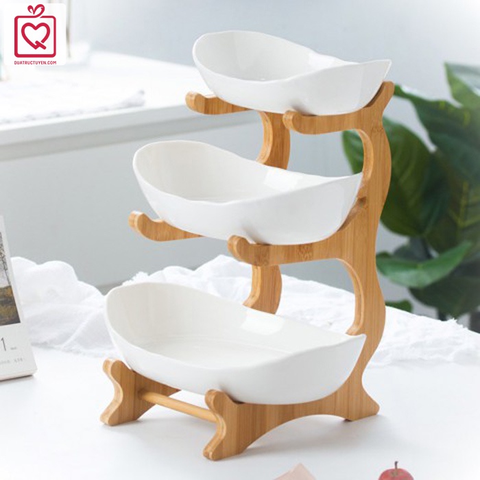 Nhà cửa & Đời sống > Bộ đồ bàn ăn > Dĩa || Bộ đĩa sứ giá gỗ khay đựng bánh mứt hoa quả, khay đựng bánh kẹo 3 tầng, 2 tầngCòn hàng