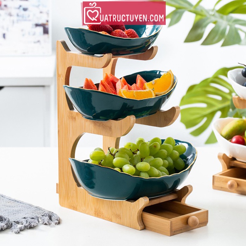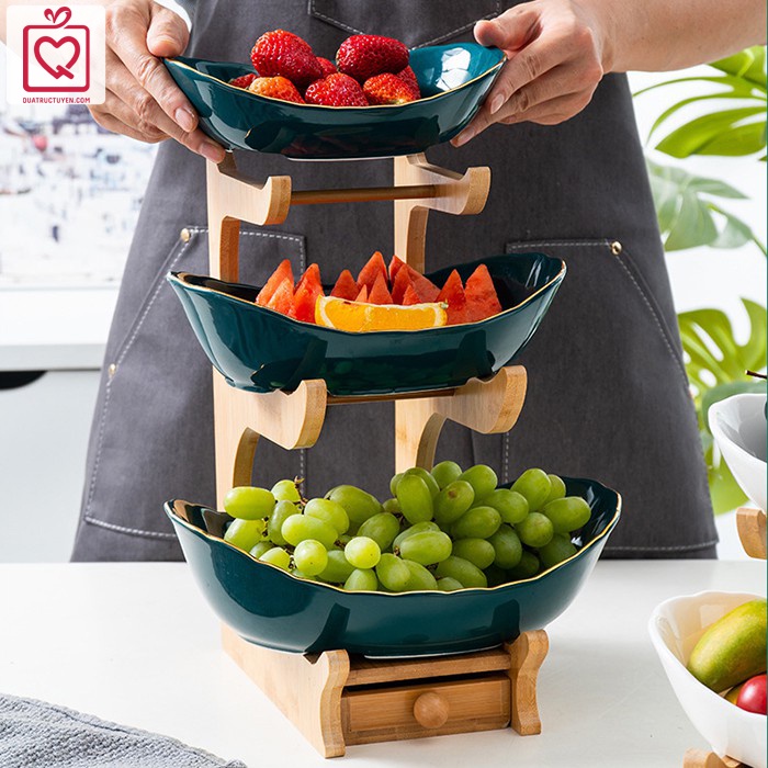 - Với giá gỗ này, bộ đĩa sứ sẽ tiết kiệm diện tích bàn, sắp xếp đĩa hoa quả, bánh mứt gọn gàng ngăn nắp trên giá và tạo cảm giác mới mẻ lạ mắt cho người dùng.