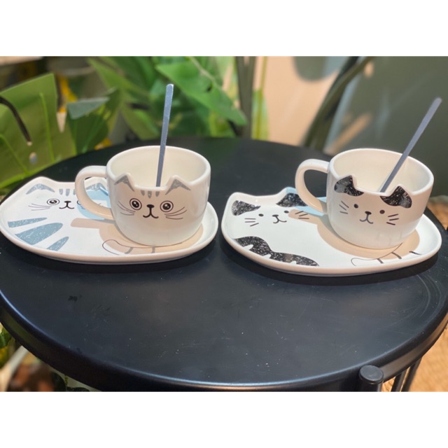 Set đĩa và tách , thìa mèoChất liệu : gốm sứ