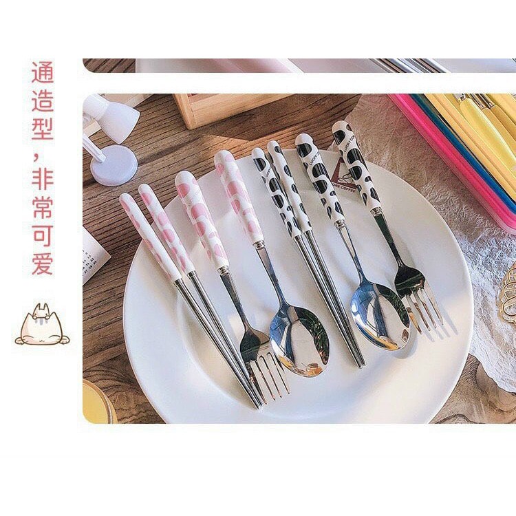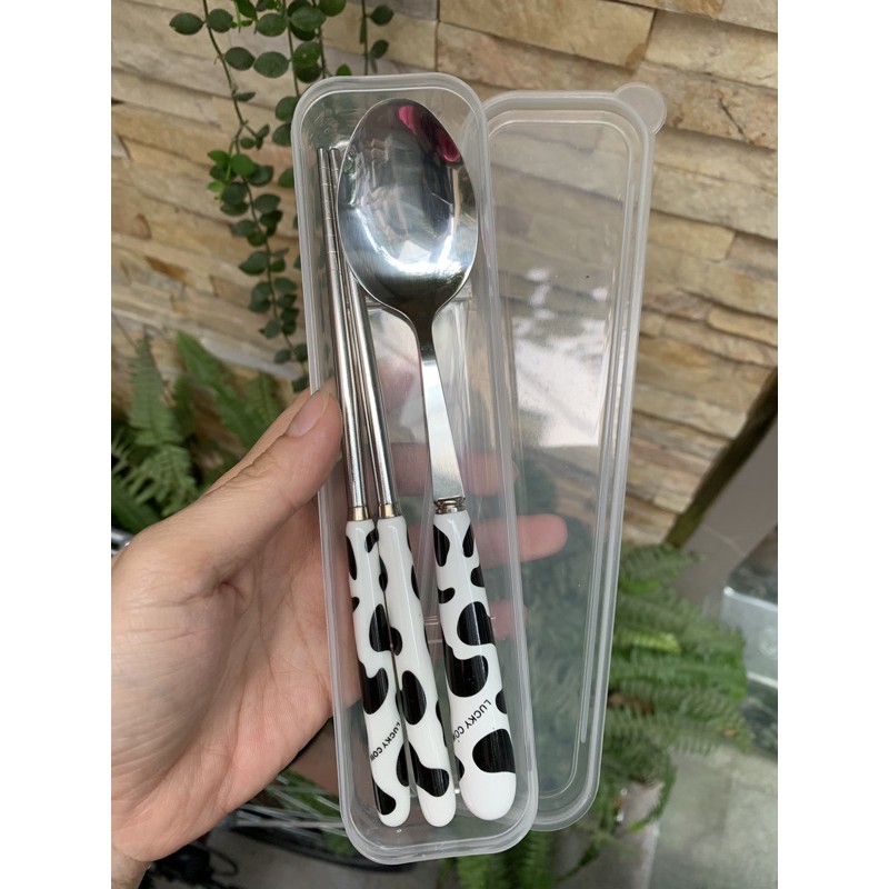 Nhà cửa & Đời sống > Bộ đồ bàn ăn > Bộ dao kéo || Bộ đũa thìa cán sứ LUCKY COW có hộp đựng (Đũa thìa bò sữa)Còn hàng