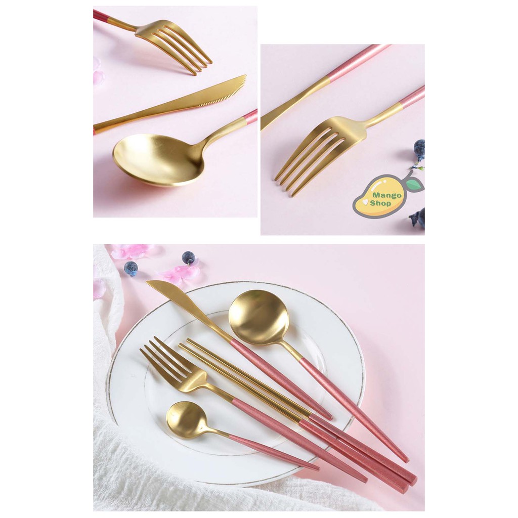 Bộ đũa thìa dao nĩa phong cách Âu Mỹ sang trọng ( bộ dao nĩa thìa đũa ăn inox 304 bàn ăn )