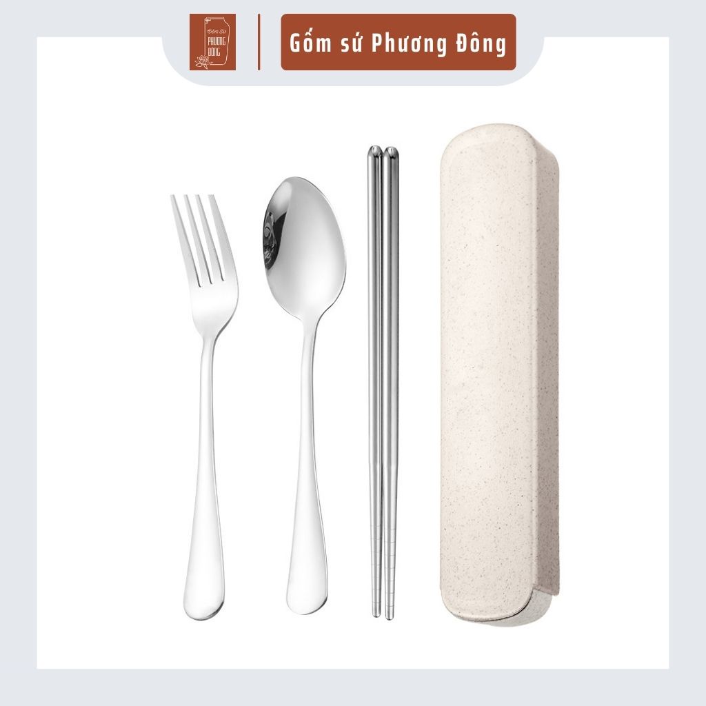 Bộ đũa thìa dĩa ăn cá nhân Phương Đông mã PD038, chất liệu inox 304 sáng bóng kèm hộp đựng