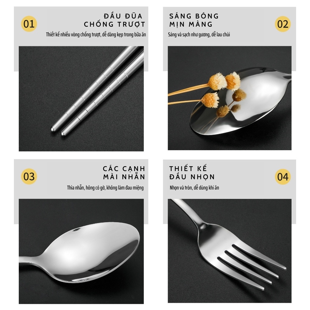BỘ ĐŨA DĨA THÌA INOX 304 rất phù hợp với thói quen ăn uống cũng như các món ăn của phần lớn người VIệt Nam nói riêng và người Á Đông nói chung. Sản phẩm sử dụng an toàn với máy rửa bát. Đại dịch Covid chứng kiến nhiều thay đổi. Nhân viên văn phòng giờ đây thường mang đồ ăn trưa khi đi làm, và sản phẩm này thực sự rất phù hợp với nhu cầu ấy. Còn tất nhiên, trên bàn ăn hay trong các căn bếp của mỗi gia đình, đều không thể thiếu bộ ba này. Học sinh bán trú cũng có thể tự chuẩn bị set này để ăn trưa tại trường.