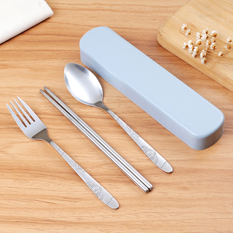 Bộ đũa thìa dĩa cá nhân ăn trưa văn phòng bằng inox cao cấp tặng hộp đựng màu trơn (DTD06)