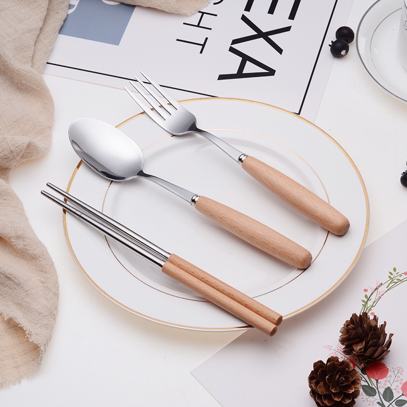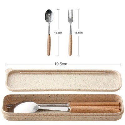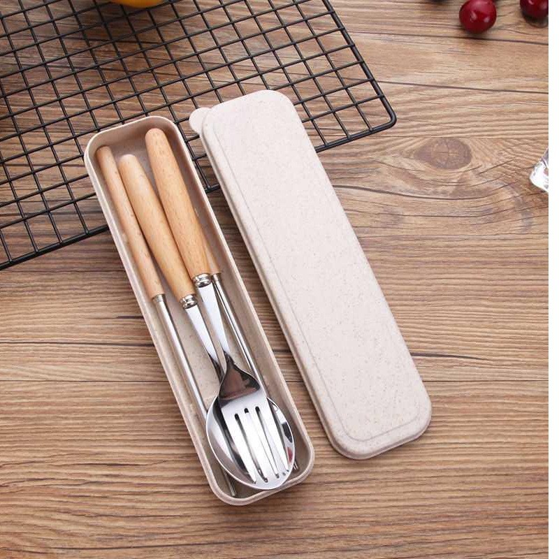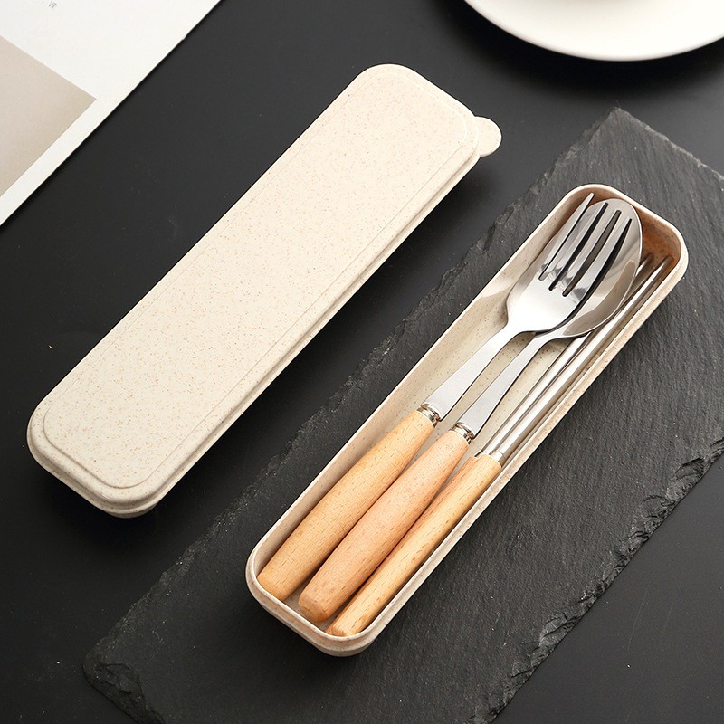 Bộ Đũa Thìa Dĩa Cá Nhân Inox Có Hộp Đựng Lúa Mạch Dùng Cho Văn Phòng, Du Lịch, Gia Đình Tiện Dụng