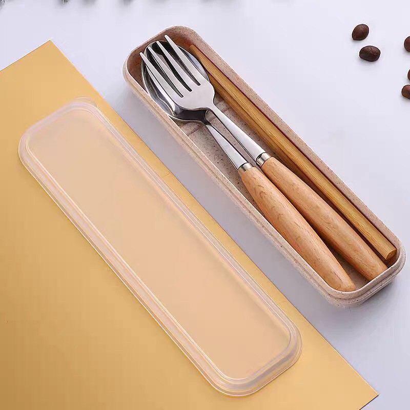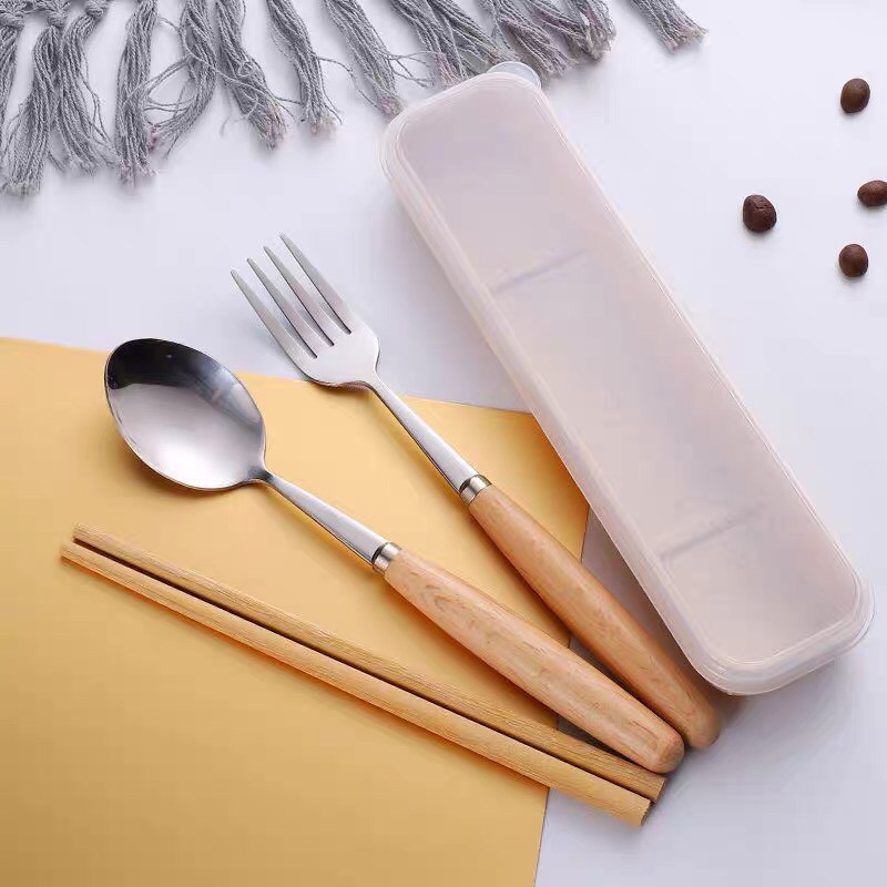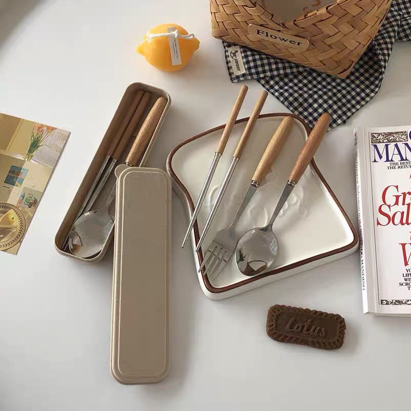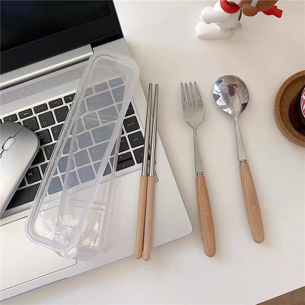 Bộ Đũa Thìa Dĩa Cá Nhân Văn Phòng Inox Cán Gỗ Cao Cấp Tặng Kèm Hộp Đựng Sang Trọng Tiện Lợi