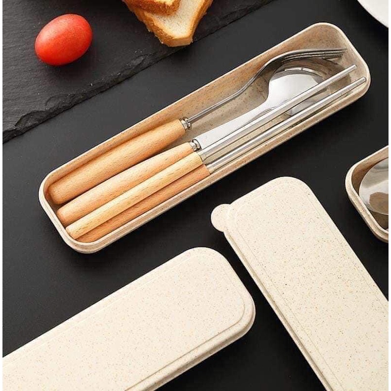 🌷Bộ đũa, thìa, dĩa cán gỗ sồi hộp đựng lúa mạch💰#50k/hộp