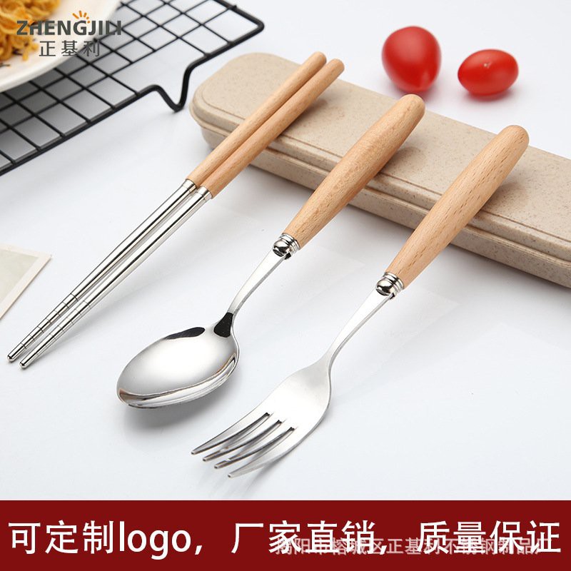 Bộ đũa+ thìa + dĩa cán gỗ tiện dụng Siêu_Rẻ - br00329
