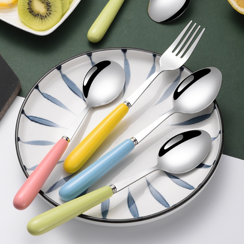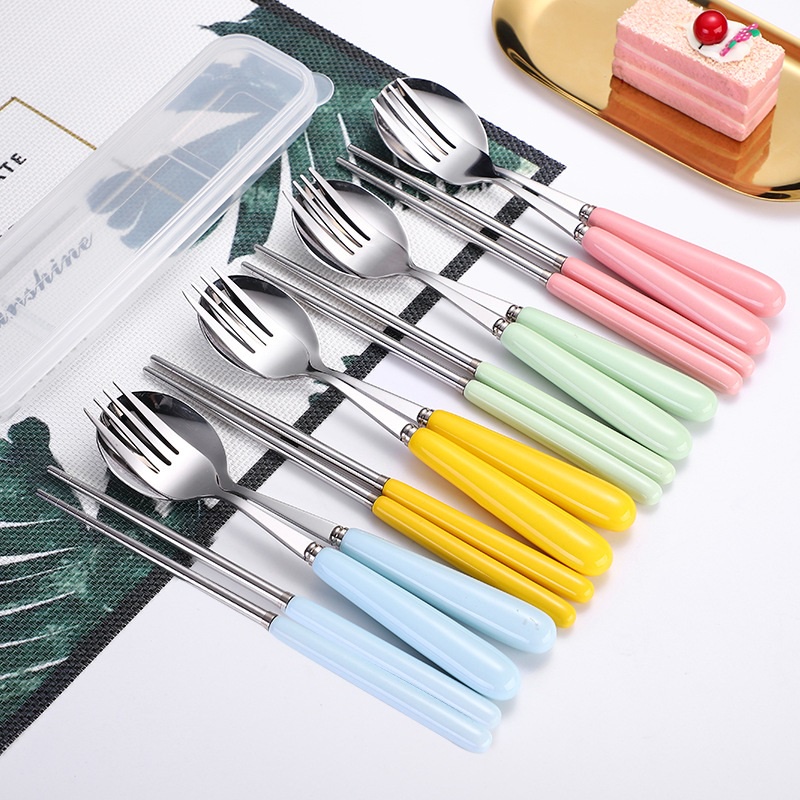 Bộ Đũa Thìa Dĩa Inox 304 Cán Sứ Cao Cấp Có Hộp Đựng Trong Suốt Siêu Dễ Thương bộ đũa thìa dĩa dùng cơm văn phòng,du lịch