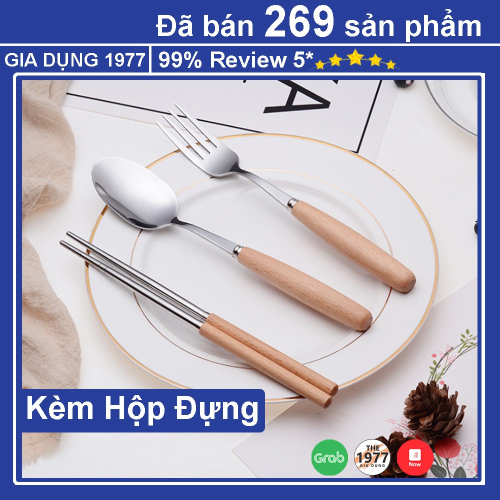 Thông tin chi tiết sản phẩm Bộ Đũa Thìa Dĩa Inox Cán Gỗ Cao Cấp Kèm Hộp Đựng: