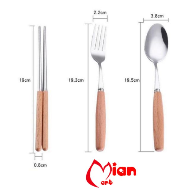 Giới thiệu Bộ đũa, thìa, dĩa inox cán gỗ hộp đựng lúa mạch cao cấp - MIAN MART
