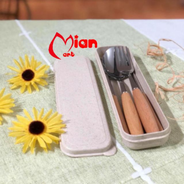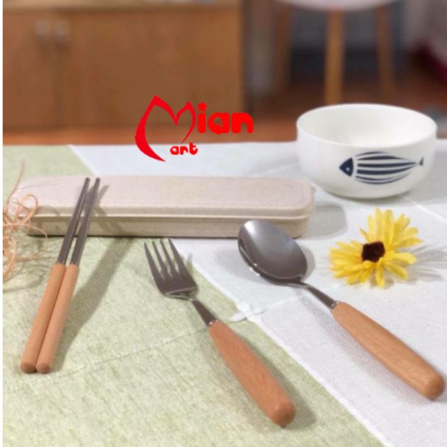 Nhà cửa & Đời sống > Bộ đồ bàn ăn > Bộ dao kéo || Bộ đũa, thìa, dĩa inox cán gỗ hộp đựng lúa mạch cao cấp - MIAN MARTCòn hàng