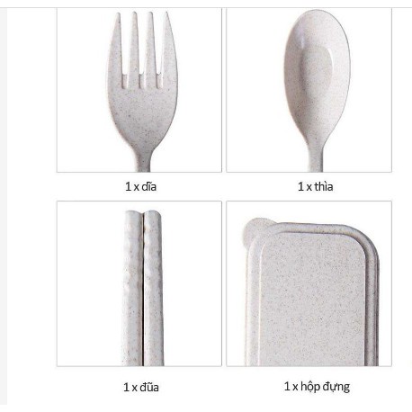Bộ gồm : 1 đôi đũa, 1 thìa, 1 dĩa và 1 hộp đựng