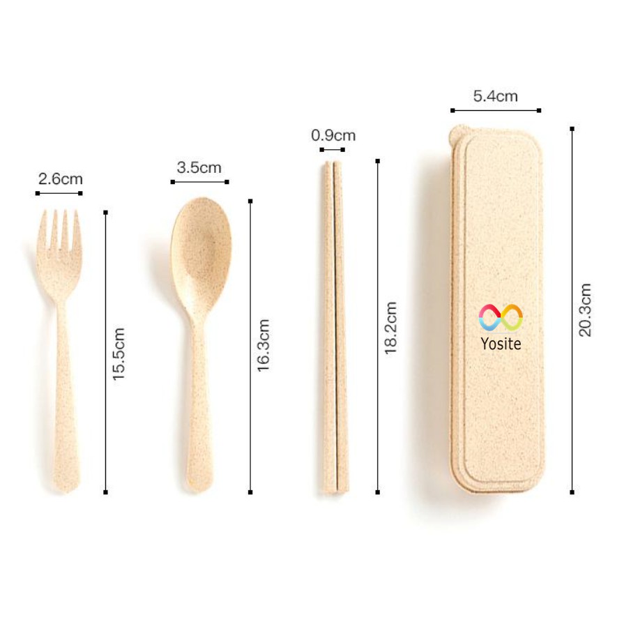 Sản phẩm bao gồm: hộp đựng, đũa, dĩa, thìa,
